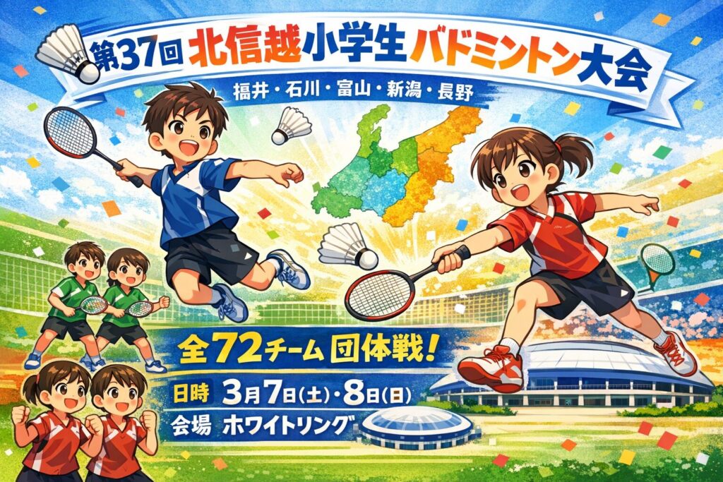 | 3/28(土)-29(日) | ⾧野春季オープン小学生バドミントン大会 | ⾧野運動公園総合運動場 総合体育館 |